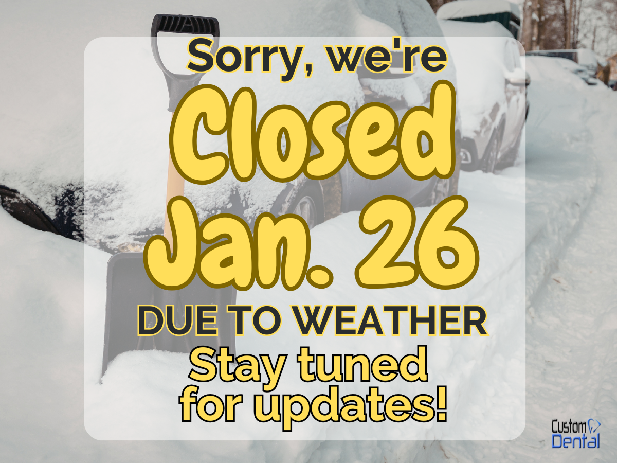 Due to the inclement weather, our office will be closed on January 26. Be sure to follow us to see daily updates on when we will reopen. If you have a scheduled appointment for Jan. 26, we'll reach out to reschedule (if we haven't already).